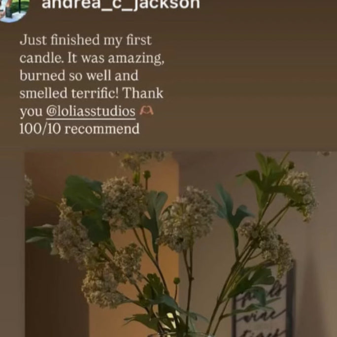 Here at Lolia's Studios we use coconut-soy wax for all of our candles. This wax burns cleaner than paraffin wax, is vegan-friendly, burns slowly and is biodegradable.