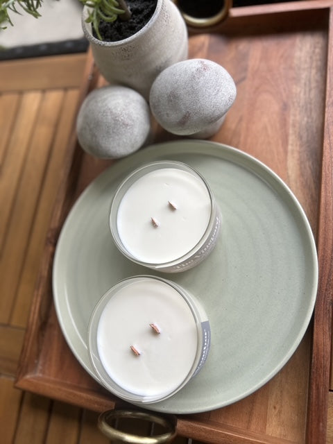 We use wooden wicks to create a more cozy feel. The wicks make a light crackling sound that mimics a fireplace. Wooden wicks also create more durable candles and release its aroma more effectively as it burns.